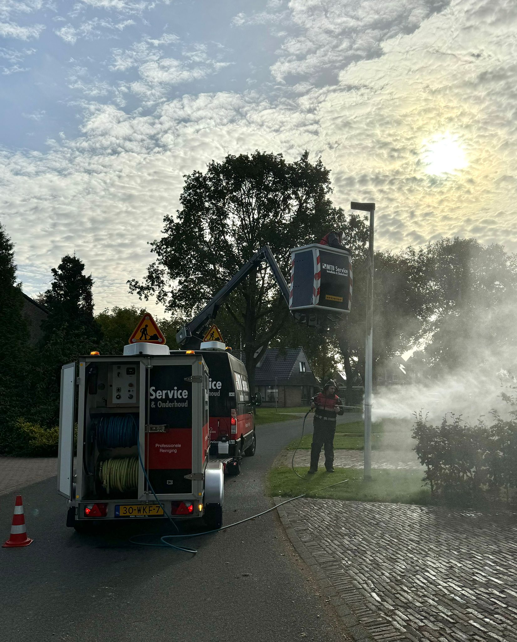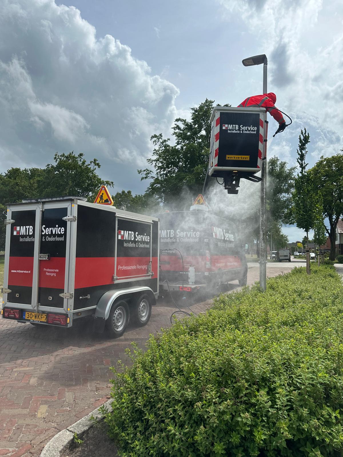 Met moderne apparatuur, waaronder een hogedruktrailer en hoogwerker, voeren wij reinigings- en onderhoudswerkzaamheden veilig en professioneel uit. Wij reinigen onder andere bestrating, gevels, panden, zonnepanelen en straatverlichting – zowel bij particulieren als bij gemeenten en bedrijven, altijd met minimale overlast.